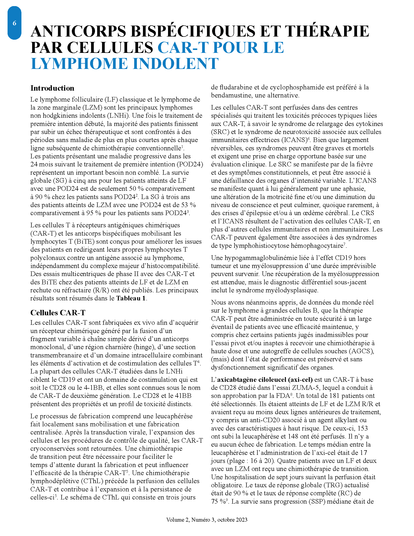 - Anticorps bispécifiques et thérapie par cellules CAR-T pour le lymphome indolent