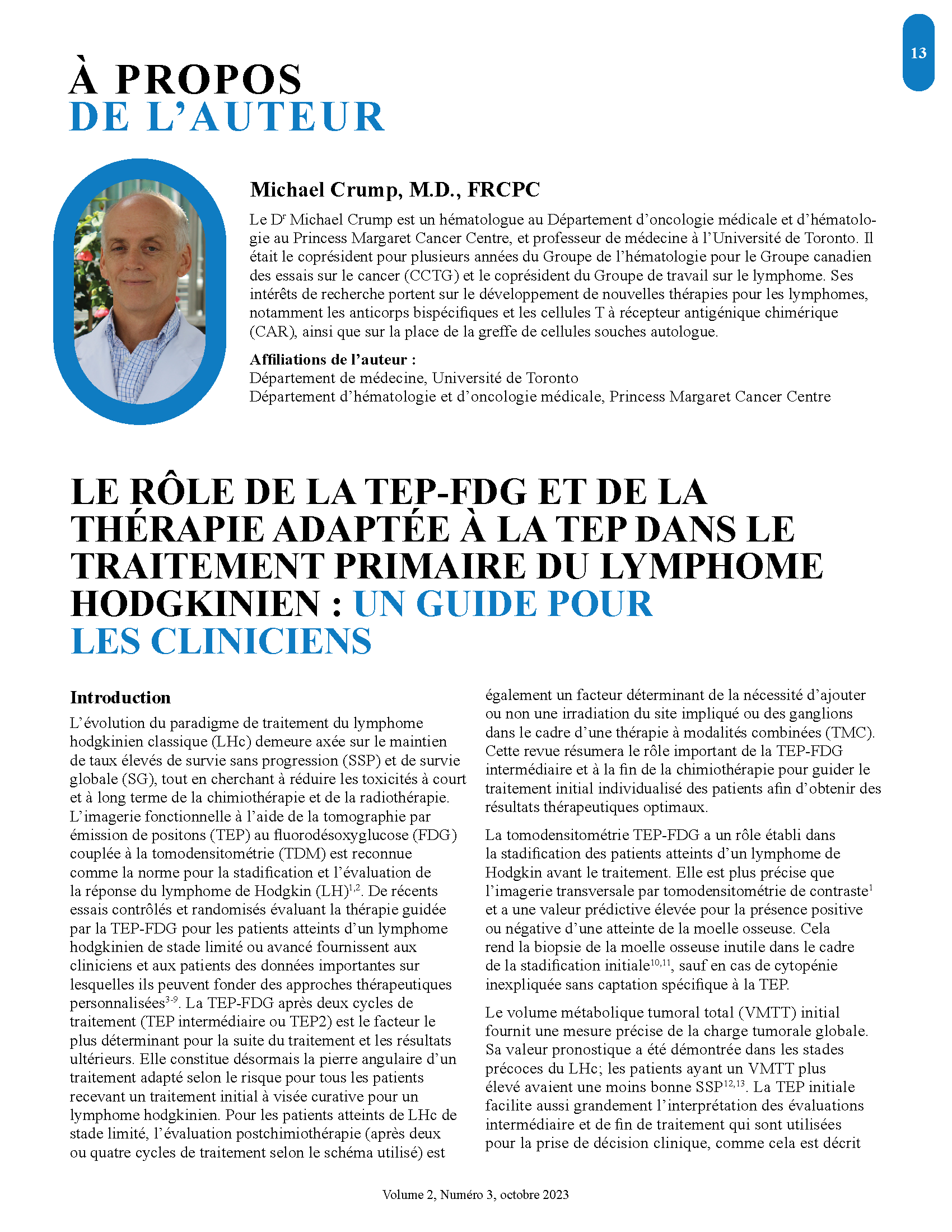 - Le rôle de la TEP-FDG et de la thérapie adaptée à la TEP dans le traitement primaire du lymphome hodgkinien : Un guide pour les cliniciens