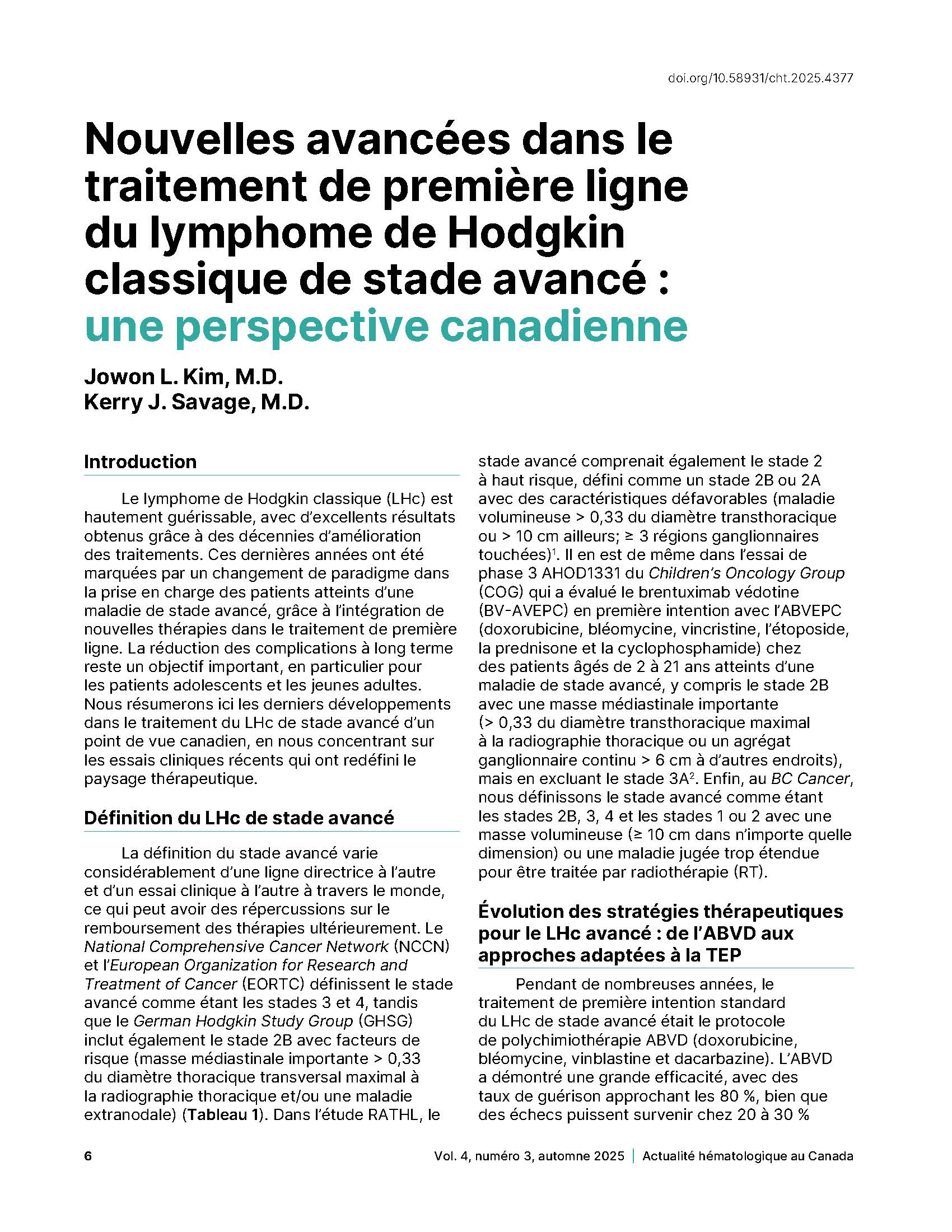 - New Developments in the Front‑line Treatment of Advanced Stage Classic Hodgkin Lymphoma: A Canadian Perspective