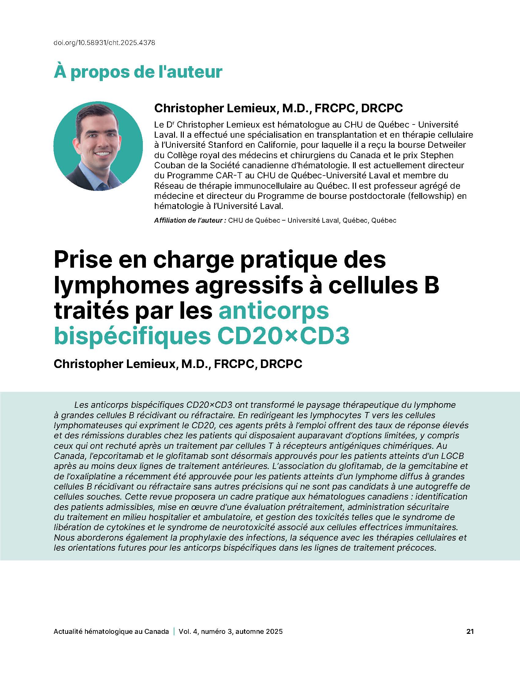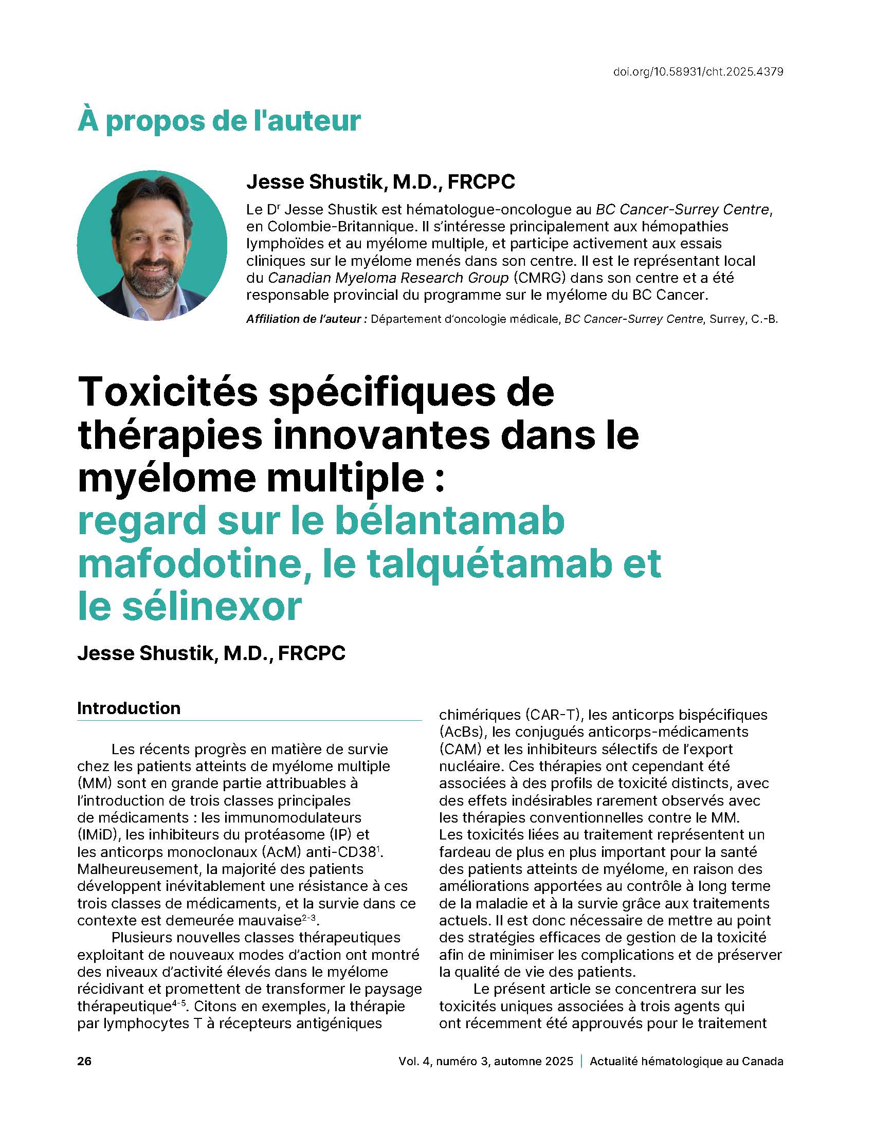 | Journal title Canadian Hematology Today. |