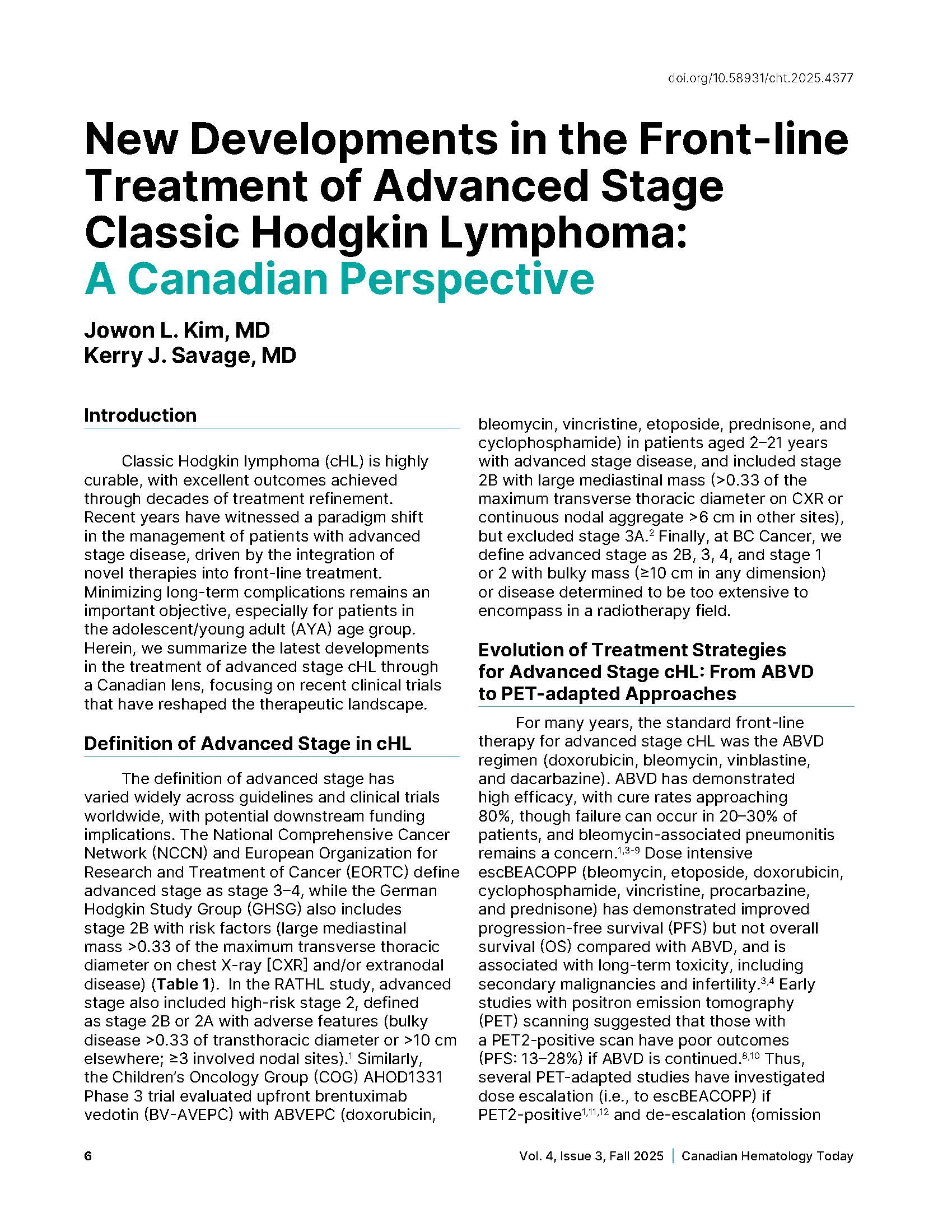 - New Developments in the Front‑line Treatment of Advanced Stage Classic Hodgkin Lymphoma: A Canadian Perspective