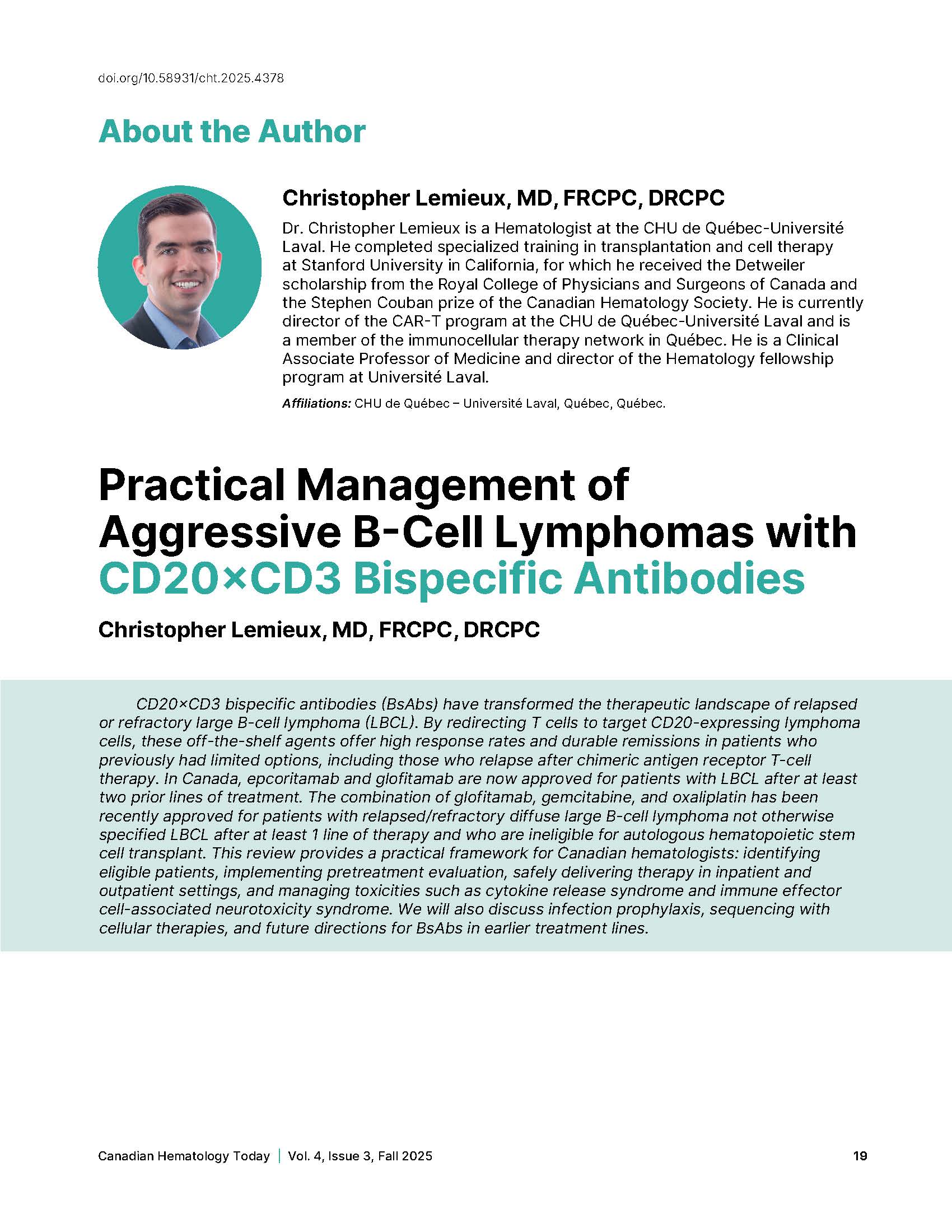| Journal title Canadian Hematology Today. |